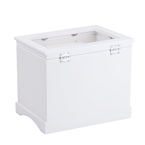 Pratica scatola portagioie con cassetti con diversi scomparti, con ripiani per anelli.