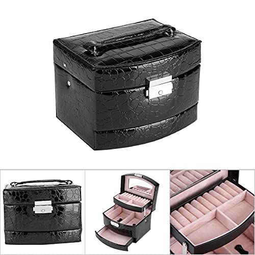 Portagioie 3 Strati,Semiautomatico Scatola di Immagazzinaggio Per Ornamenti di Collana di Gioielli Con Piccolo Specchio All'interno e Lucchetto Articoli per La Casa Regalo Retrò per Donna (Nero)