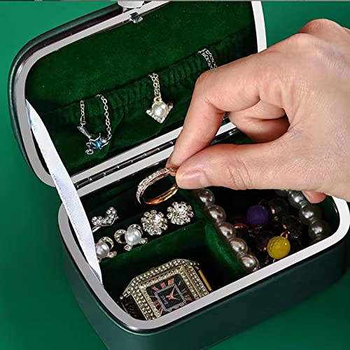 Portagioie da viaggio, portagioie da viaggio in ecopelle mini velluto, portagioie per la camera delle donne, ecopelle per anelli, orecchini, collane, rossetti, ecc (verde scuro)