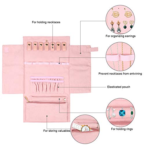 Materiale di alta qualità: la borsa organizer pieghevole per gioielli è realizzata in morbida pelle e pelle scamosciata di qualità, che assume un aspetto grazioso e ti consente di organizzare i tuoi gioielli in modo ordinato. Una buona mano per proteggere i tuoi oggetti preziosi mentre sei in viaggio.