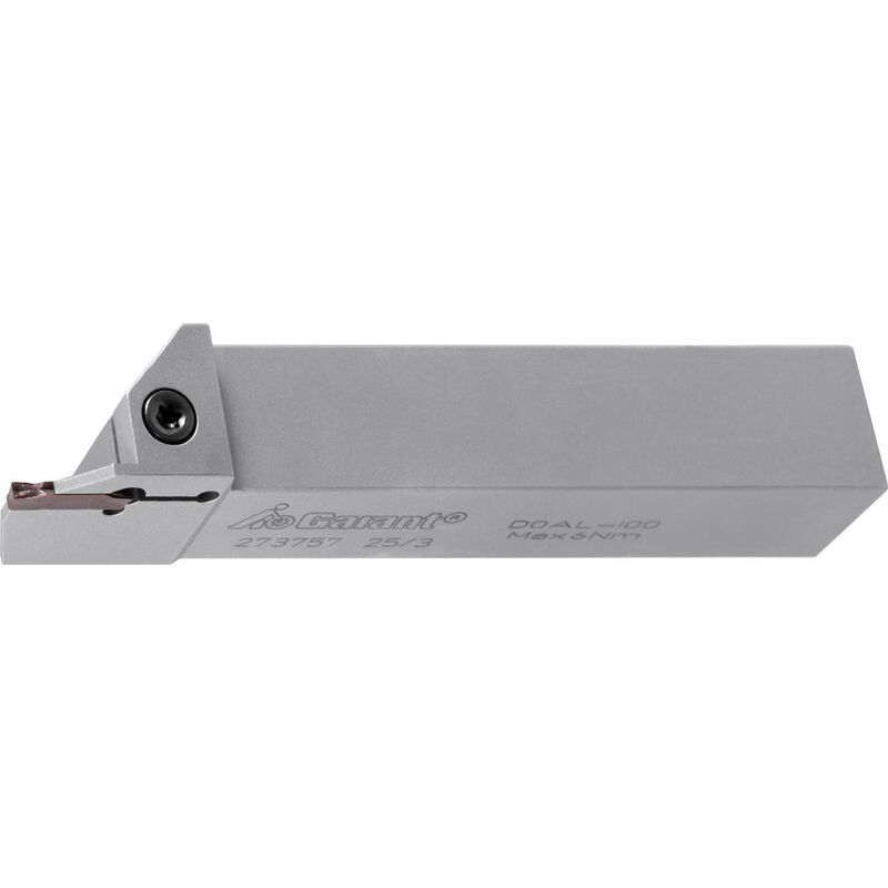 In acciaio per utensili ad alta resistenza (>1300 N/mm2). In combinazione con il serraggio inserti convesso si ottiene la massima resistenza contro forze di taglio assiali e radiali, aumentando di conseguenza notevolmente la qualità delle superfici e la produttività. Nota: A partire da una profondità gola di 19,5 mm (fino a larghezza gola di 3 mm) o da una profondità gola di 24,5 mm (da larghezza gola di 4 mm), il tagliente posteriore viene a contatto con il pezzo. In questo caso si possono verificare rigature di lavorazione. All'occorrenza, usare inserti di troncatura a un tagliente n. art. 273656 - 273670. Dati tecnici Possibilità di troncatura assiale sì Tipo di impiego destro Passaggio interno per LR no Tipo di codolo Portautensili autobloccanti Tipo di prodotto Portainserti con bloccaggio a staffa Lunghezza della testina L1, mm 31,5 Larghezza gola w, mm 2 Vite 279815 5 (TX25;