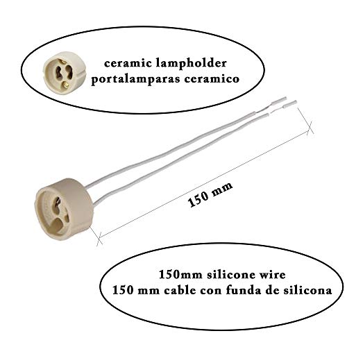 - Connettore lampada GU10 in ceramica e cavo in silicone da 150 mm da 0,75 mm2