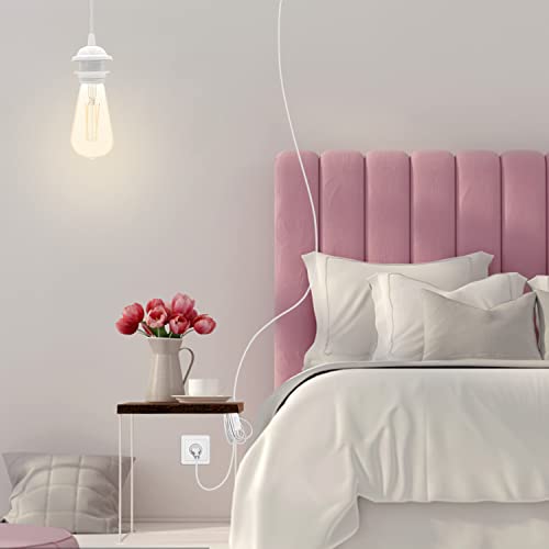 Portalampada E27 con interruttore, kit di 2 lampade a sospensione con cavo di alimentazione e spina, colore nero, 450 cm, lampada a sospensione fai da te, lampada a sospensione per paralume (bianco)