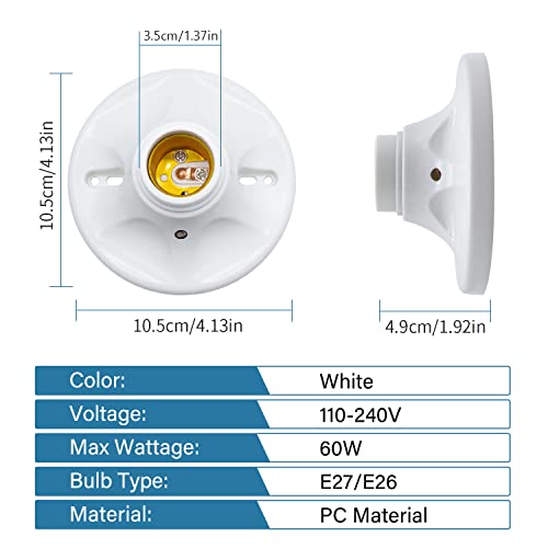 Portalampada E27 da Muro e Soffitto, E27 Plastica Esterno Supporto Della Lampada Bianco Base in Plastica Tonda, Controllo Suono Soffitto Base Lampada di Vite Socket per Garage Corridoio