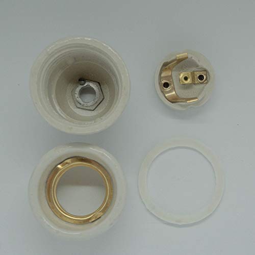 Portalampada in porcellana E 27, 3 pezzi, con filettatura M10, smaltato in vero UE.