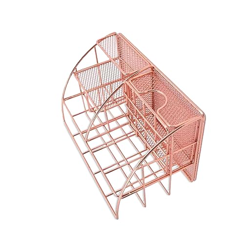 Portamatite, organizer da scrivania, portapenne, cancelleria, documenti, organizer da ufficio, rete metallica multifunzionale con cassetto oro rosa