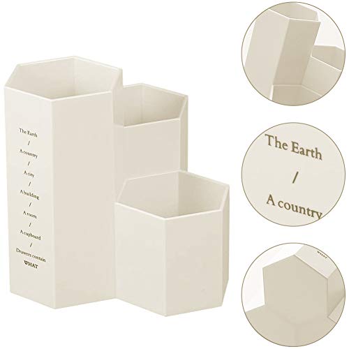 Multifunzionale: 3 scomparti separati rendono facile organizzare penne, matite e pennarelli. Gli scomparti in plastica multifunzionali sono ideali per graffette e piccoli accessori, il supporto esagonale può essere utilizzato per riporre una varietà di cosmetici, pennelli da trucco, matita per sopracciglia, smalto per unghie, spugna per il trucco. Forniture per ufficio, come penne, matite, righelli, forbici, nastro adesivo, ecc.