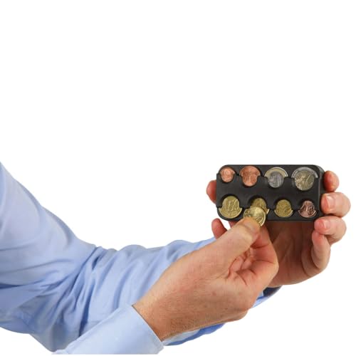 Portamonete compatto con classificatore a 8 monete | Portafoglio classificatore | Adatto per Cameriere, Taxi, Autobus, venditori nel parco divertimenti, Venditori ambulanti | Plastica | Nero