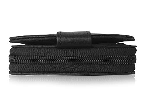 Portamonete da donna nero, piccolo portafoglio in pelle - 3 tasche per monete e 6 per carte - finestra posteriore per foto o carta d'identità - tasca portamonete con zip tutta intorno - micro fibra interna - 12 cm x 9 cm x 4 cm - Quenchy London QL220, Black (Nero) - QL220