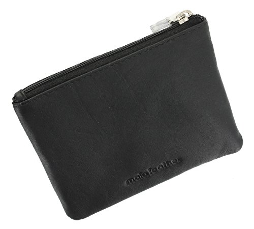 Portamonete di pelle Mala Leather con chiusura a zip e anello porta chiavi. Decorato con un teschio 485_11 Nero
