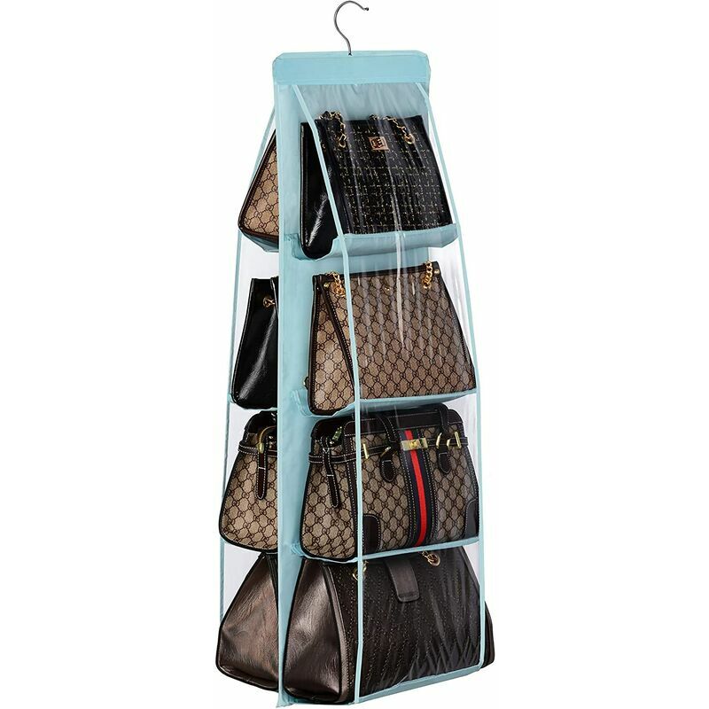 Mantieni le tue borse, portamonete, pochette e altri oggetti come coperte o biancheria ordinati e organizzati con l'organizer pensile a 8 tasche, creando facilmente spazio di archiviazione e rendendo il tuo armadio ordinato Realizzato in doppia -tessuto Oxford a strati e PVC, che gli conferisce grande robustezza e non appesantisce l'armadio;