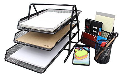 Set di 4 portaoggetti da scrivania, comprensivo di mensola portalettere, portamatite, porta blocchetti per appunti e raccoglitore portadocumenti Nero