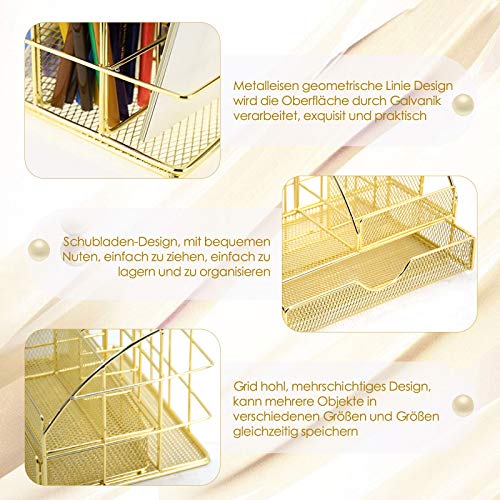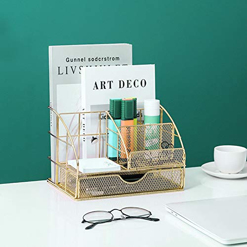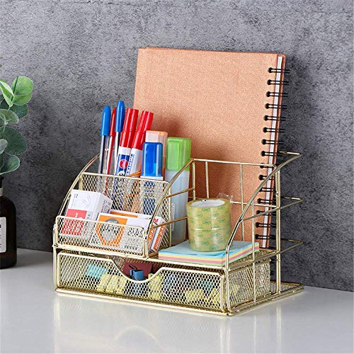 Portaoggetti da scrivania in metallo Portadocumenti da scrivania Cornice fissa Griglia artistica in ferro Rivestimento in oro con cassetto Scatola multiscomparto adatto