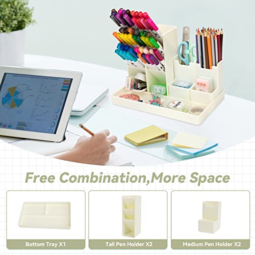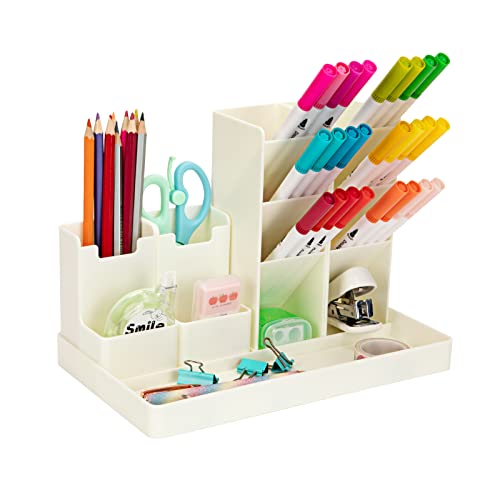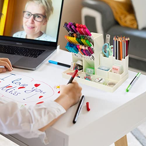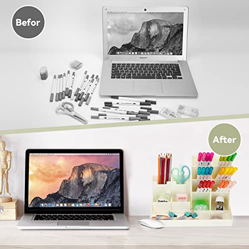 Portaoggetti da Scrivania, Organizer da Scrivania Portapenne Multifunzionale Combinabile, Grande capacità scomparti per Bambini penne e articoli di cancelleria, per Ufficio, Casa, Scuola (Bianco)