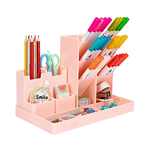 Portaoggetti da Scrivania, Organizer da Scrivania Portapenne Multifunzionale Combinabile, Grande capacità scomparti per Bambini penne e articoli di cancelleria, per Ufficio, Casa, Scuola (Rosa)