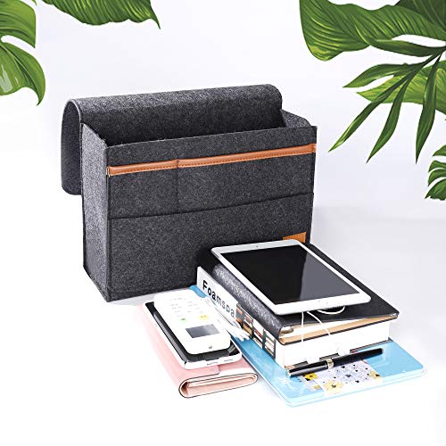 Portaoggetti Tasca da Appendere per Letto o Divano, Feltro da Comodino Organizzatore Tasca per Telefono,Telecomando, Magzine, Occhiali, Libro, Pad con Fori per Cavi e 4 Tasche