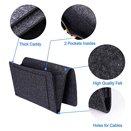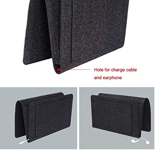 Portaoggetti Tasca da Appendere per Letto o Divano, Feltro da Comodino Organizzatore Tasca per Telefono,Telecomando, Magzine, Occhiali, Libro, Pad con Fori per Cavi e 5 Tasche
