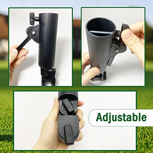 Angolo regolabile per spostare l'ombrello a sinistra oa destra, in avanti o indietro. Larghezza interna regolabile per manici per ombrelli di diverse dimensioni. Contiene la maggior parte degli ombrelli da golf.
