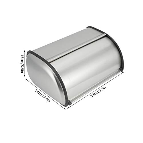 Portapane in Acciaio Inossidabile, Contenitore per Pane Satinato e Lucidato con Coperchio Scorrevole, Portapane di Grande Capacità per Bancone della Cucina - 33x24x15cm