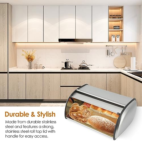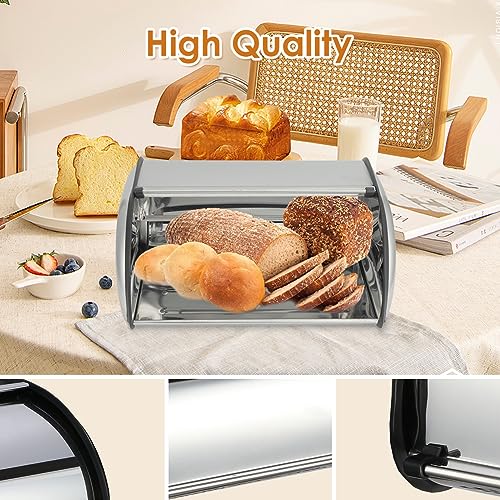 【Grande Capacità】 Questa elegante scatola per il pane da appoggio da cucina è perfetta per conservare più pagnotte di pane e altri prodotti da forno freschi come biscotti, bagel, muffin e altro;