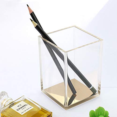 Portapenne, portapenne, in acrilico trasparente, per scrivania, con glitter, dorato, per ufficio, scuola, casa, organizer e accessori (oro)