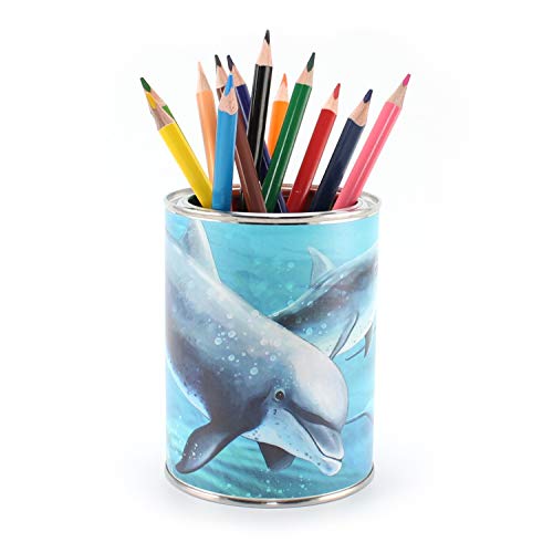 Portapenne con immagine di delfini, con 12 matite colorate triangolari;