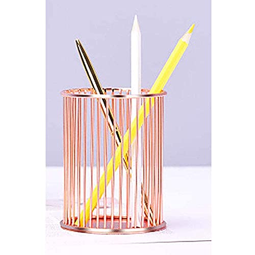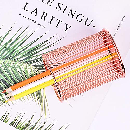 Portapenne portapenne di Metallo tondo cavo di moda scatola portaoggetti per ufficio scatola portapenne porta pennelli trucco (oro rosa)