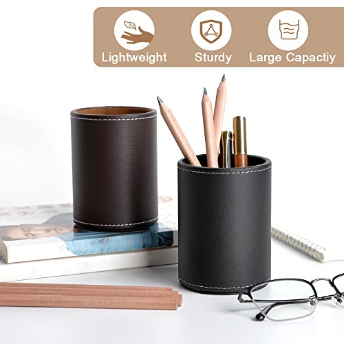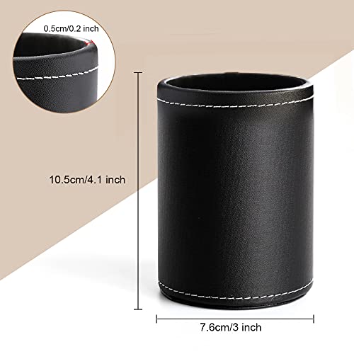 WHC Portapenne da Scrivania Ufficio in Finta Pelle, Porta Penne Per Scrivania Design Portamatite Pen, Pot Pen Stand for Office, Portapenne Rotondo in Nero di Forma Rotondo per Ufficio, Scuola e Casa