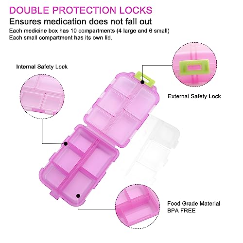 Planner per medicinali: ogni portapillole ha 10 scomparti spaziosi (4 grandi e 6 piccoli), in modo da poter pianificare ed etichettare più di 7 giorni di farmaci. Questo è un ottimo modo per prevenire o ridurre gli errori di farmaci in alcuni pazienti. Lo spazioso contenitore per medicinali offre abbastanza spazio per riporre i tuoi farmaci quotidiani.