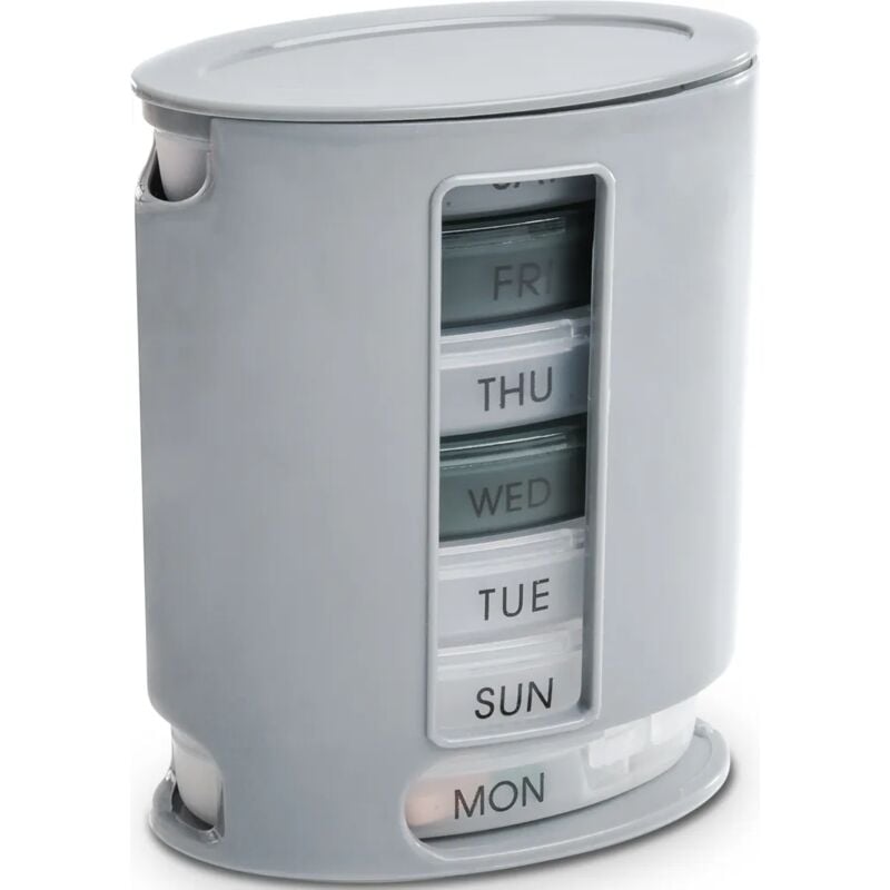 Comodo organizer 7 giorni su 7. Un pratico organizer per pillole, suddiviso in 7 giorni della settimana e 4 volte ciascuno - mattina, mezzogiorno, sera e notte - ti aiuta a tenere traccia dei farmaci che devi assumere per vari motivi. Se ne hai bisogno per te o per qualcuno che ami, ti aiuterà a dormire bene. Lo sapevi che, secondo le statistiche, circa il 50% delle malattie croniche come il diabete, le malattie cardiache o l'asma che devono essere curate con la giusta dose di farmaci non vengono curate in modo efficace proprio perché assunte al momento sbagliato o non assunte a Tutto? È davvero così semplice. Vantaggi del prodotto: Comodi contenitori, divisi in 7 giorni della settimana, Ogni giorno della settimana è diviso in 4 ore del giorno: mattina, mezzogiorno, sera, notte, Apri facilmente ogni scomparto con una semplice pressione, < li>Vassoi completamente retrattili per riempimento facile della pillola, Specifiche: Materiale di costruzione: ABS, Colore contenitore: grigio
