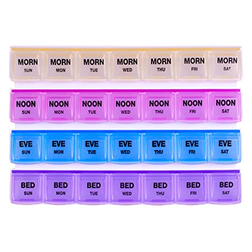 vedi facilmente quando prendi i tuoi farmaci con questo organizer per pillole facile da aprire 4 volte al giorno per tutti i 7 giorni della settimana