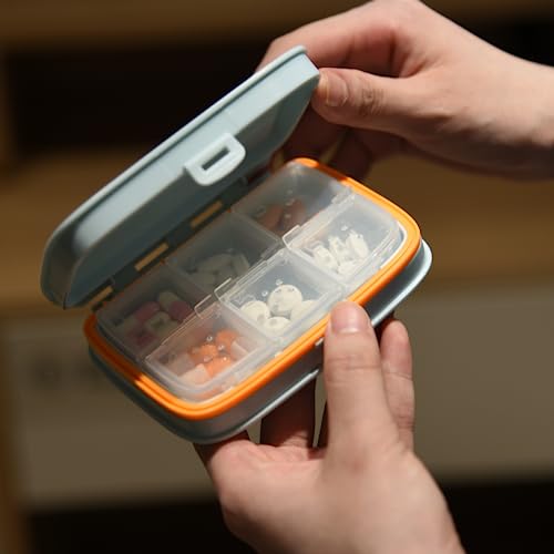 Portapillole Impermeabile | Pill box Organizer, Scatola Portatile con Scomparti Singoli | Portapasticche Tascabile per Viaggio | Robusto, BPA-free (Grande+Picc, Blu/Bianco)