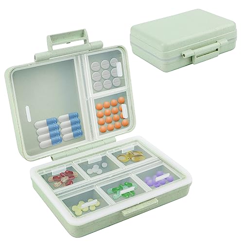 【Materiale Sicuro】: la scatola dei medicinali è realizzata in materiale PP di paglia di grano ecologico per uso alimentare, che è sicuro ed ecologico, non tossico e insapore e non contiene BPA.Può essere tranquillamente utilizzato per conservare le pillole.