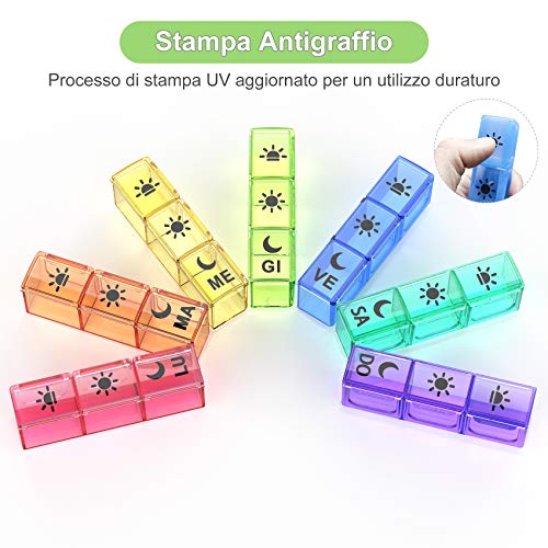Portapillole Settimanale 7 Giorni GRANDE Pill Box Giornaliero Grande Stampa in ITALIANO per Gli Anziani, Viaggio, 21 Scomparti per Mattino Pomeriggio Sera (Colore)