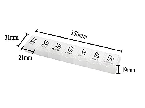 PortaPillole Settimanale (ITALIANO), Portapillole a 7 Scomparti per 7 giorni, Organizer Settimanale per Medicinali, Scatola per Farmaci Settimanale (1 x PACCHETTO, Trasparente)