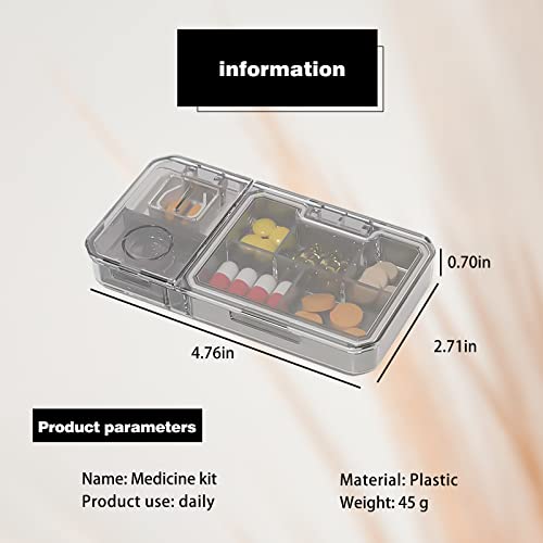 Portapillole Settimanale Portapillole Tascabile 5 Scomparti Può Essere Tagliato Portapillole Giornaliero Impermeabile Piccolo per Viaggio e Uso Quotidiano - Grigio