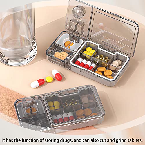 【Design di taglio e lucidatura】Non solo ha la funzione di conservare i medicinali, la nostra scatola dei medicinali può anche tagliare e macinare le compresse, puoi usarla in base alle tue esigenze, non preoccuparti di tagliare e macinare le compresse!
