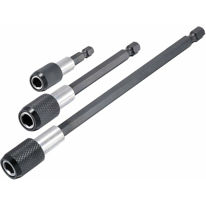 Include 3 x 2, 4, 6 (60 mm/100 mm/150 mm) per soddisfare le diverse esigenze, compatti e portatili. Codolo esagonale da 1/4, cambio e sgancio rapido, compatibile con tutti i trapani, avvitatori a impulsi da 1/4 e cacciaviti manuali. Set di estensione per tutti i tipi di punte per viti, punte per viti. Il sistema di cambio e sgancio rapido consente di installare, bloccare e sbloccare rapidamente il trapano. Il portainserti magnetico aiuta a tenere e tenere le viti. Realizzato in acciaio al cromo vanadio (CR-V), trattato termicamente, elevata durezza, resistente all'usura, durevole e di lunga durata. Potente magnete permanente incorporato (parte del foro) che tiene saldamente il trapano, ideale per viti difficili da raggiungere. Questo portainserti magnetico è perfetto per estendere tutti i tipi di punte per cacciaviti, punte per trapano, punte fisse, punte per cacciaviti. Questo set ti permetterà di entrare più facilmente in spazi ristretti. Questo è un ottimo set per il tuo fai-da-te.