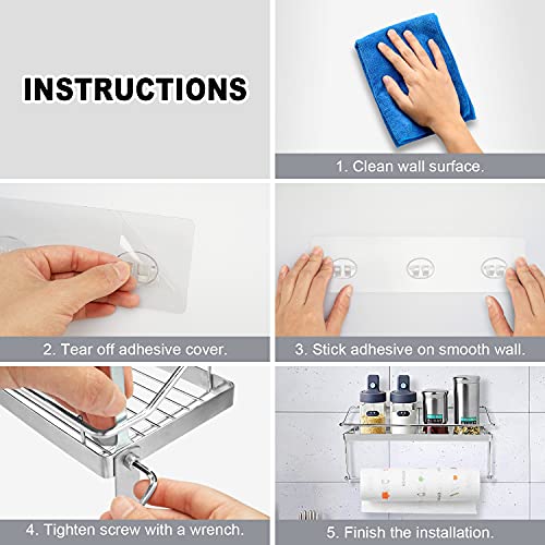 Nessuna foratura Installazione rapida senza bisogno di foratura. Potente nano adesivo che offre un forte cuscinetto e capacità. Si prega di notare che l'adesivo non è riutilizzabile. Si prega di tenere premuto almeno 5 secondi e non mettere nulla sullo scaffale entro 24 ore