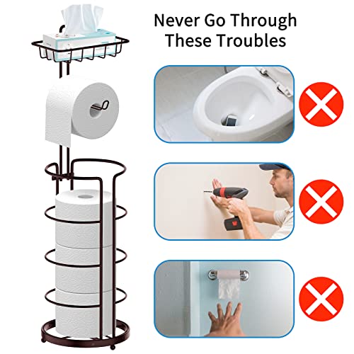 Portarotolo in metallo per carta igienica, senza foratura, moderno porta rotolo di carta igienica con mensola, per mega rotella/cellulare (bronzo)