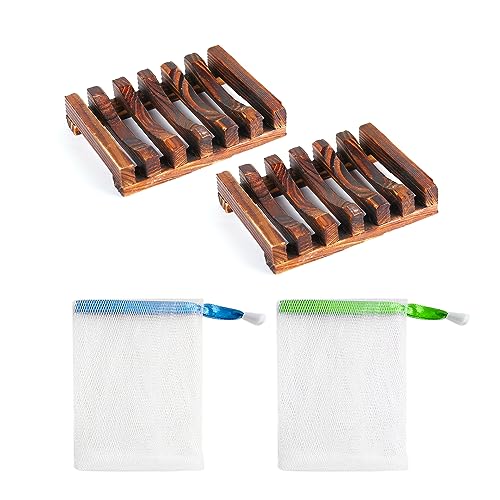 ✅ Contenuto del prodotto: riceverai 2 pezzi di portasapone in legno, 2 pezzi di reti di sapone per schiumare e conservare, la combinazione e la quantità del set soddisfano le tue esigenze quotidiane.