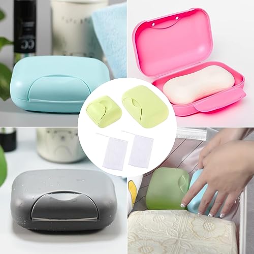 【Informazioni sulla confezione】 Riceverai scatole di sapone portatili 2pcs 11.5 x 7.5 x 4cm, 7x 7x 4cm (verde) e 2pcs mesh bags per 9 x 15cm, piccola, grande capacità, leggera e non occupa spazio.