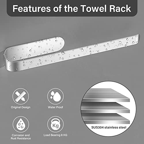 Portasciugamani da bagno - Portasciugamani autoadesivo da parete del bagno, in acciaio inox SUS304, nichel spazzolato, 37 cm, argento