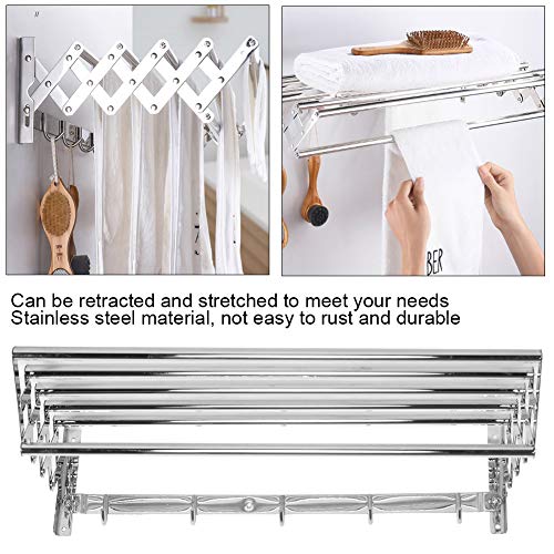 Portasciugamani, Mensola portasciugamani in Acciaio Inossidabile per Bagno Stendibiancheria a Scomparsa Montaggio a Parete Stendibiancheria per Montaggio a Parete Abbigliamento per Uso Domestico in Ho