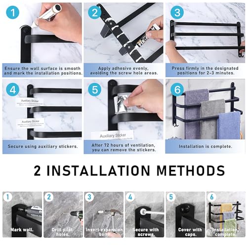 【Abbastanza sufficiente】 La barra di fissaggio spessa rende il portasciugamani più solido e può contenere un asciugamano da bagno sufficientemente pesante. È perfetto per famiglie moderne e alberghi per appendere e organizzare asciugamani, asciugamani da bagno e vestiti.