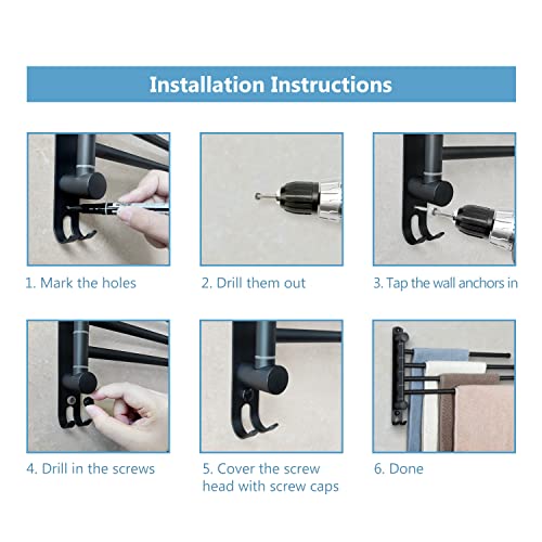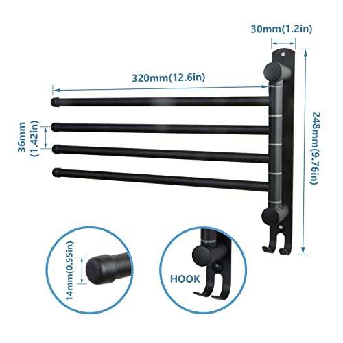 Portasciugamani da parete JSVER Portasciugamani girevole SUS304 Portasciugamani in acciaio inossidabile, Portasciugamani salvaspazio Portasciugamani per bagno, cucina (nero)