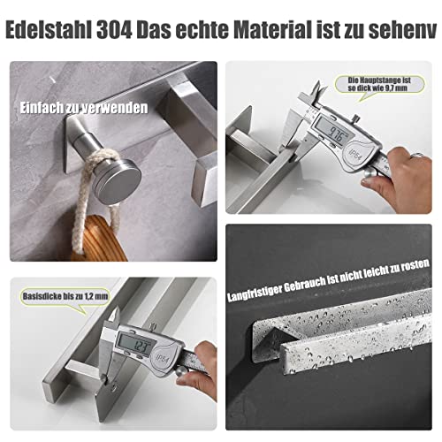 Portasciugamani senza foratura 40 cm, Porta Asciugamani Senza Foratura, in acciaio inox, e 2 ganci per asciugamani, porta asciugamani per ospiti con ganci, per Bagno e Cucina
