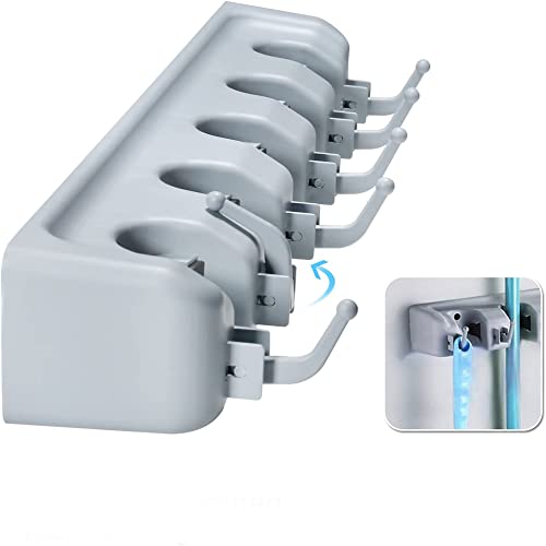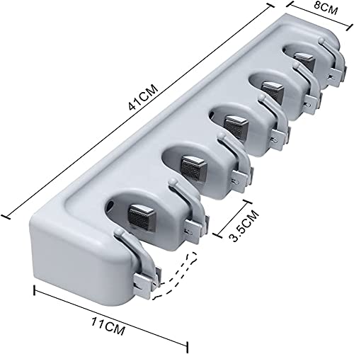 Portascope e Portaspazzole Muro per Garage, Cucina, Cantina, Salvaspazio Porta Scope Parete con Ganci Supporto Per Scopa e Spazzolone Robusto 5 Posti e 6 Ganci grigio