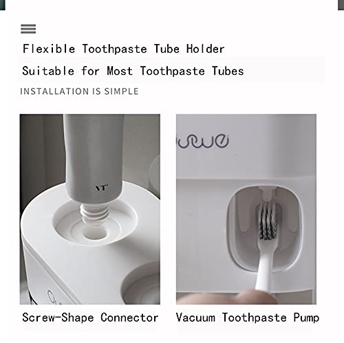 Portaspazzolino da parete con 2 dispenser dentifricio, 4 supporti per spazzolini da denti, set doppio dentifricio per bagno con copertura antipolvere