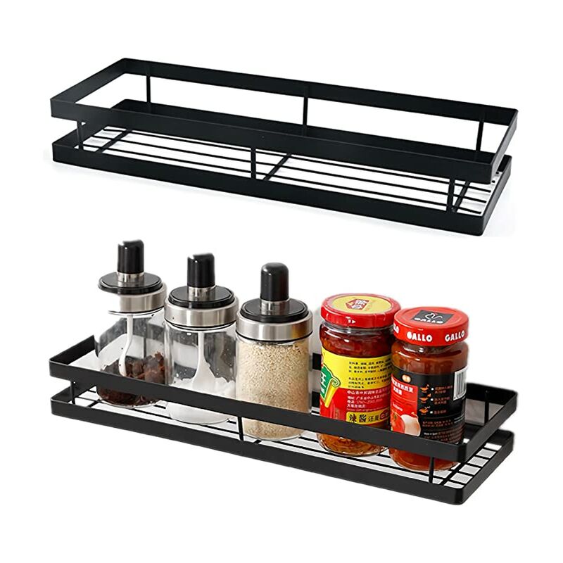 Scelta migliore per ogni cucina - Confezione da 1 barattolo di spezie salvaspazio (senza barattolo di spezie), sono separati e non a più livelli per riporre ripiani, armadietti e cassetti, che non solo consentono di risparmiare spazio, ma consentono anche i vasetti da conservare in un luogo riconoscibile e pratico. Dopo aver finito, puoi facilmente posizionare più barattoli e dire addio alla cucina disordinata. 【Resistente e facile da pulire】 Il portaspezie misura 40 x 12 x 5,5 cm, è realizzato in acciaio inossidabile e verniciato di nero, può resistere ai graffi quotidiani, alla corrosione e allo sbiadimento ed è adatto per ambienti umidi, rendendoli più durevoli rispetto alle mensole in plastica o legno. La parte saldata del portaspezie è lucida e liscia e non ha punte acuminate, quindi non ti farai male alle mani durante la pulizia. 【Installazione stabile e facile】Ci sono due metodi di installazione tra cui scegliere, con adesivi o viti. I ganci adesivi e le viti sono tutti